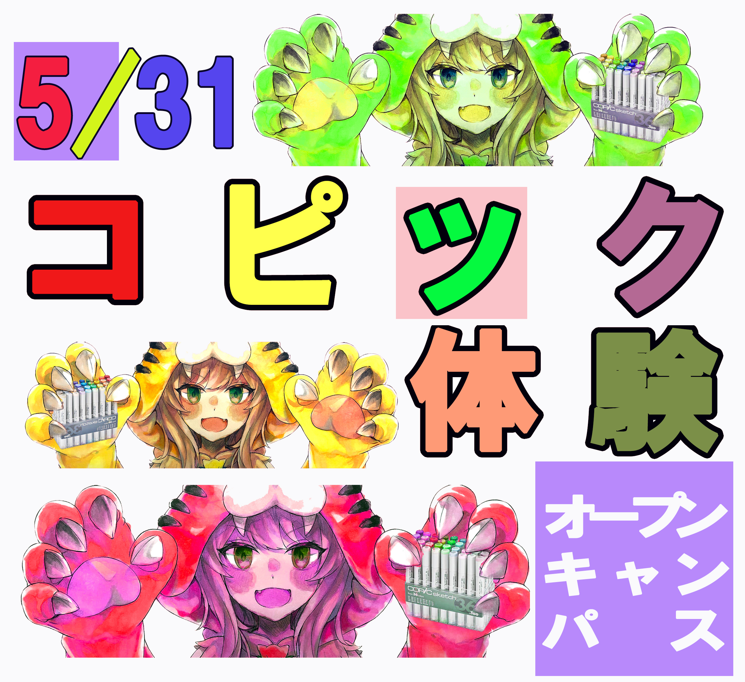 5/31(土) マンガ・イラスト学科のオープンキャンパスは「コピックでキャラクターの着彩テクニックを基礎から体験!」です。