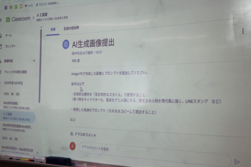 また、ChatGPTをはじめとする生成AIも、文章作成や画像生成、プログラミング支援など、さまざまな分野で活用されていことから、実際の活用方法をこの授業を通して実践し、仕事の効率化や創造的なアイデアの発展に役立てられる人材になることをめざします!