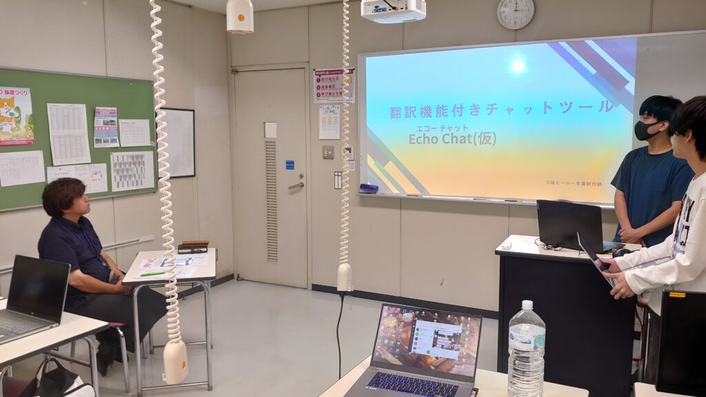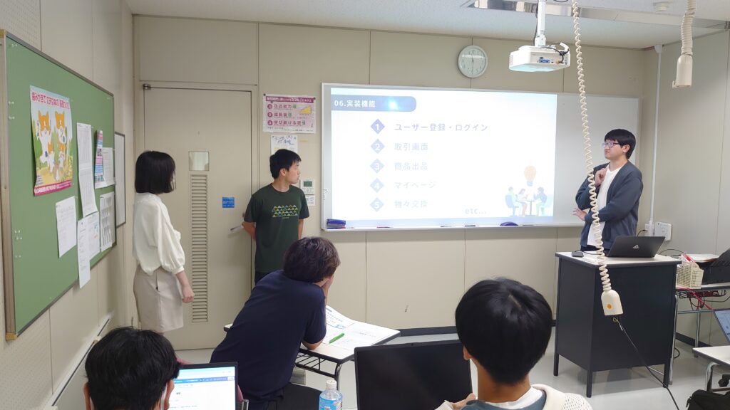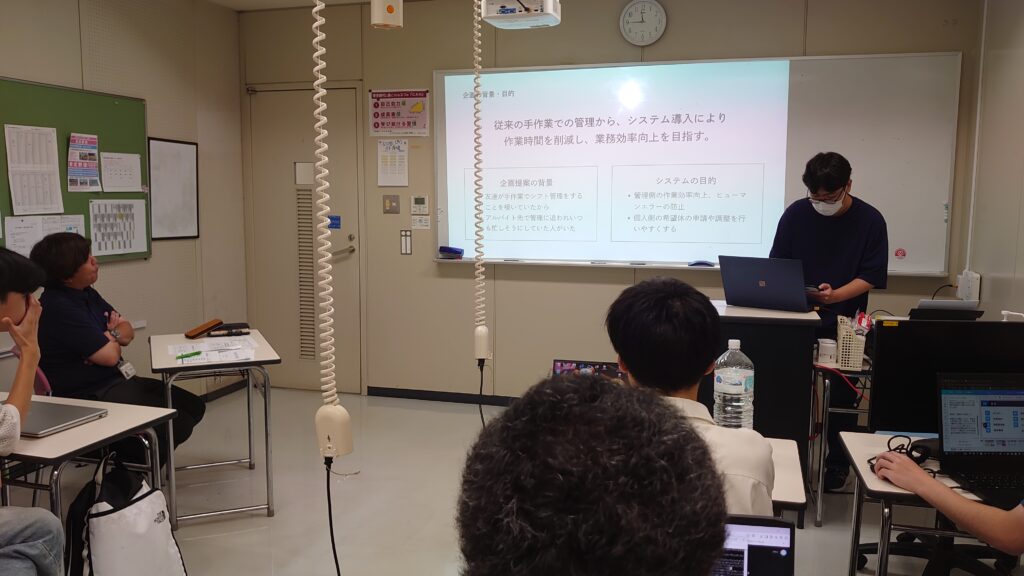 この発表会は、来年1月に予定している卒業制作最終報告会に向けて、各チームが「どんなテーマでどんなシステムを作るのか」を紹介する大切な機会です。