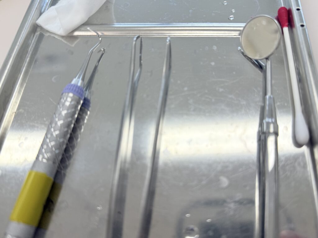 最初は器具を歯に当てるのも恐る恐るでした。模型とは違う感覚を初めて体験し、次回はもっと上手に取りたいという