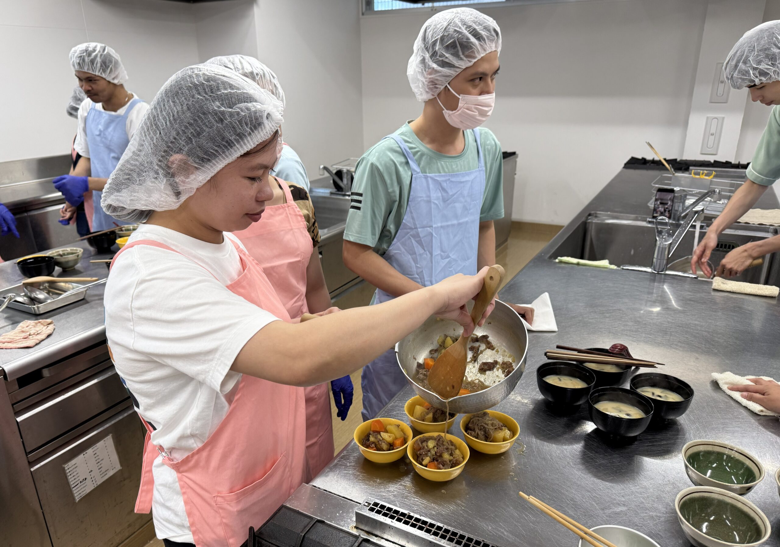 利用者が食べやすいように食材の切り方や大きさの統一などを学び、利用者一人ひとりの状況に合わせた方法を考えました。