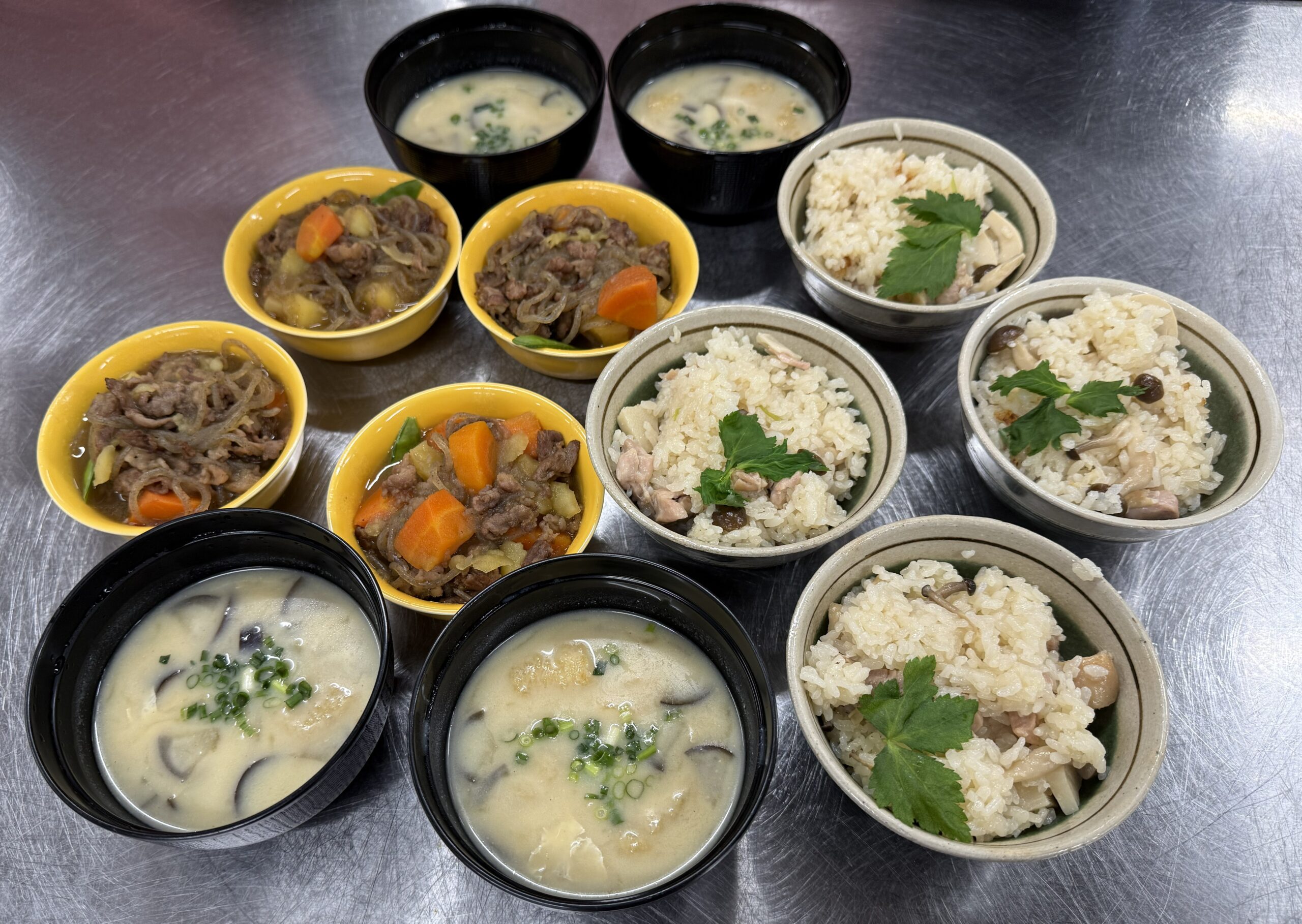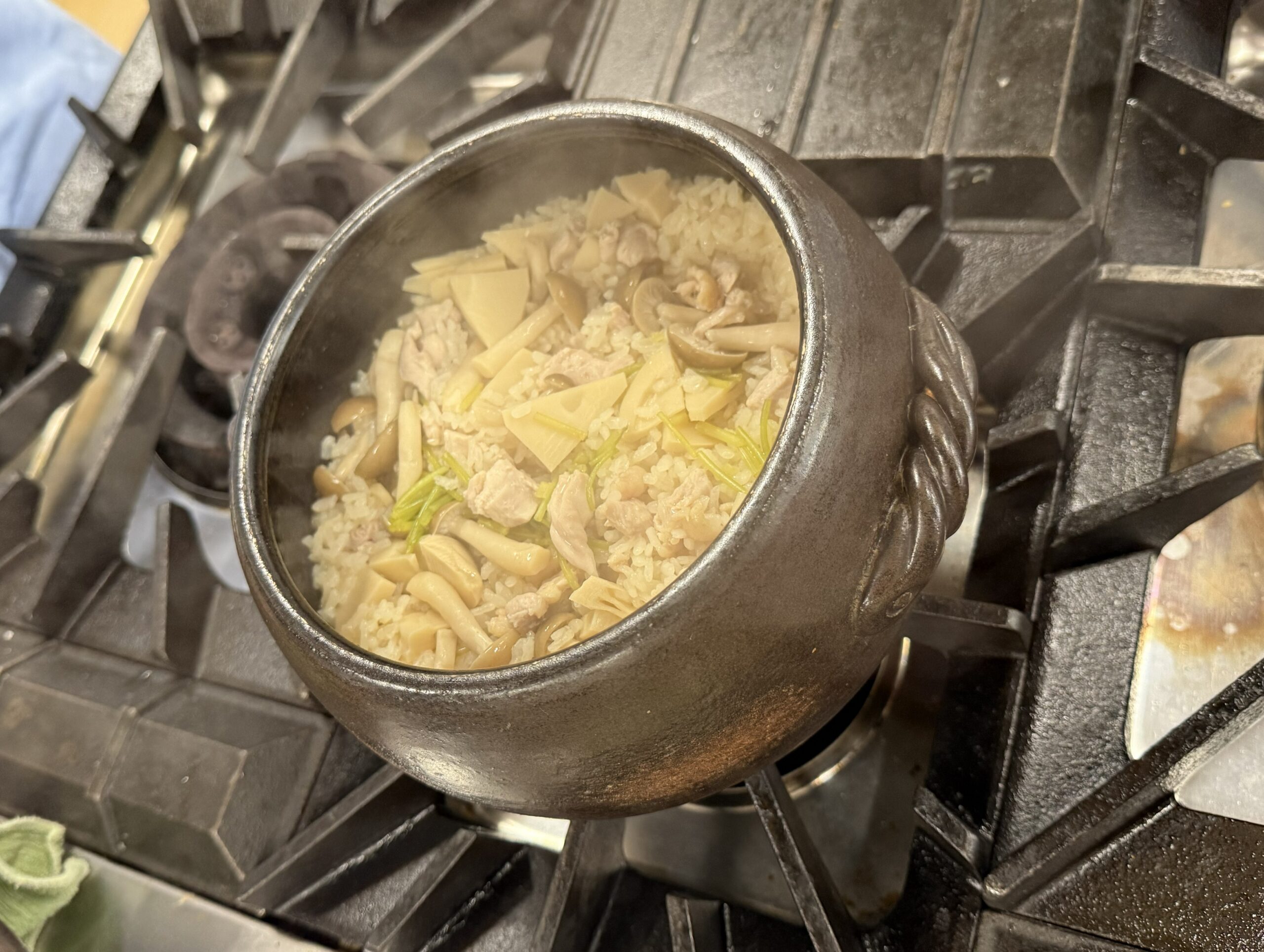 土鍋での炊飯にも挑戦して、匂いや彩を意識して盛り付けることで、嗅覚、視覚を意識した調理を行いました。