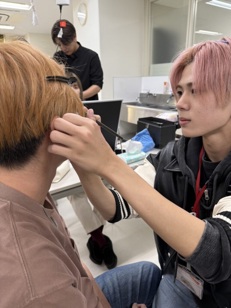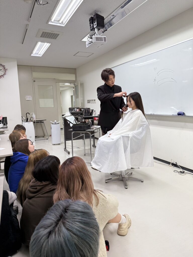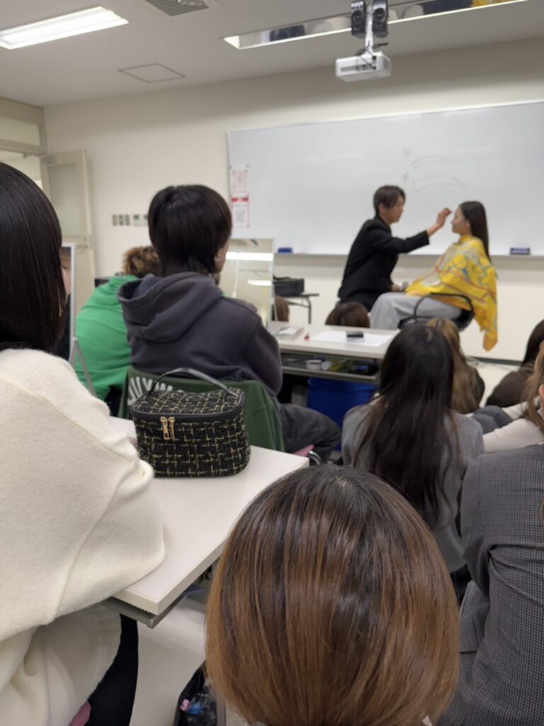 先週、特別講師Tommy氏によるヘアメイク授業を実施しました。