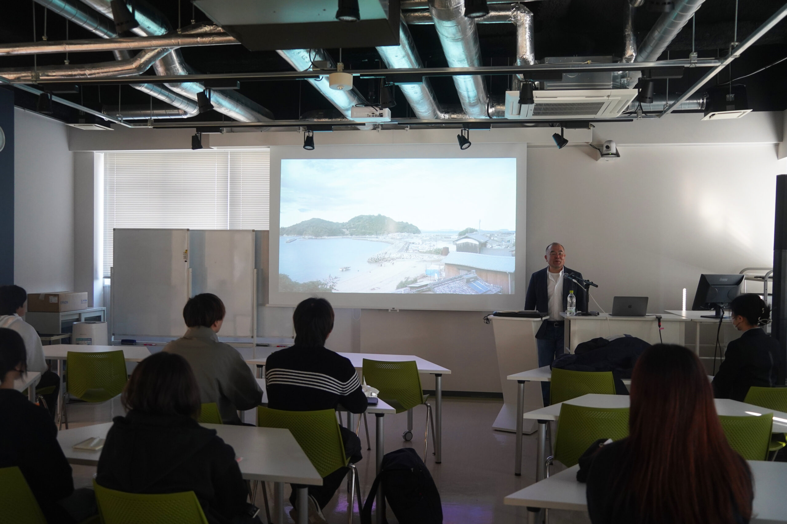 瀬戸内デザイングランプリの表彰式にあわせて、新村則人先生が来校され、在校生に向けて特別講義を行ってくださいました。
