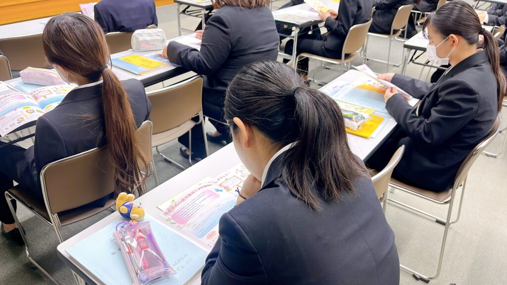 アイネットさんでは就職のサポートや保育士として働き出してからも相談に乗ってもらえると知り、学生たちも心強い様子でした。