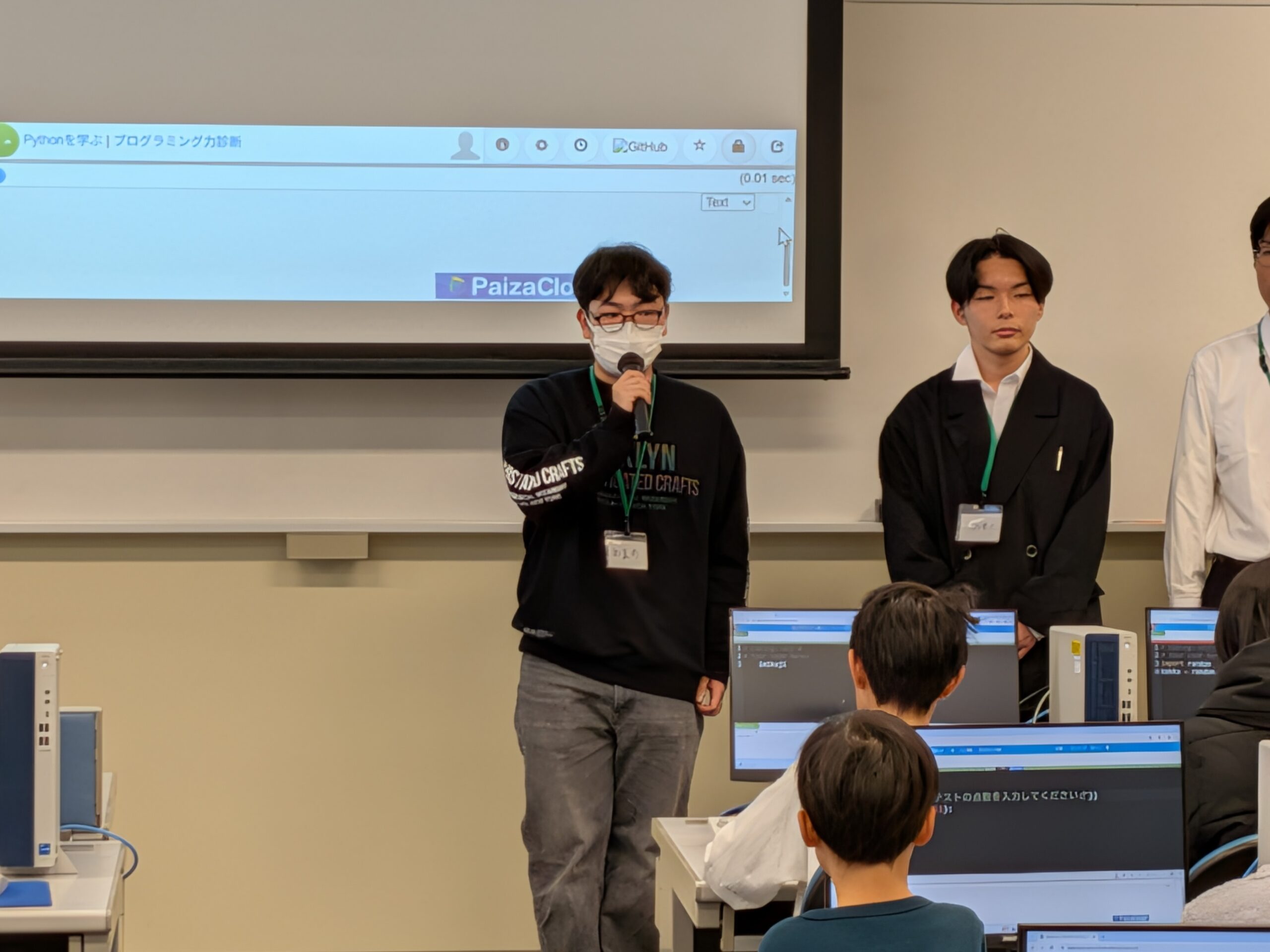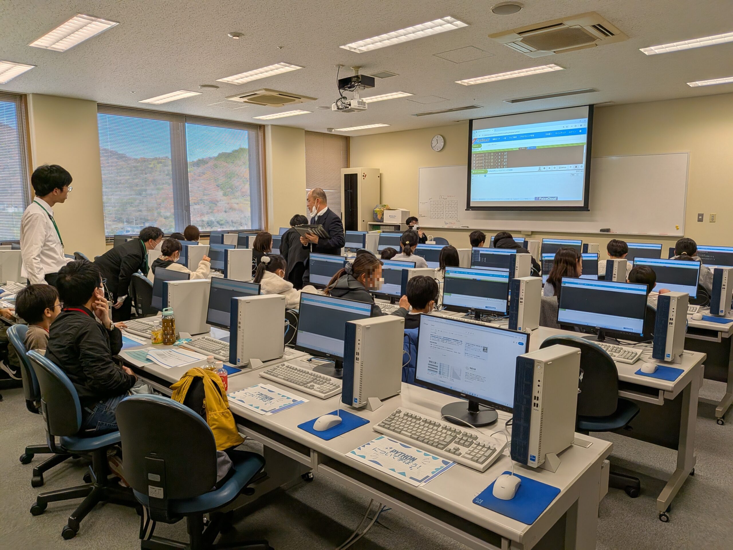 参加者のみなさんに、プログラミング言語「Python」の基本操作の説明を聞きながらプログラミングにチャレンジしてもらいました。