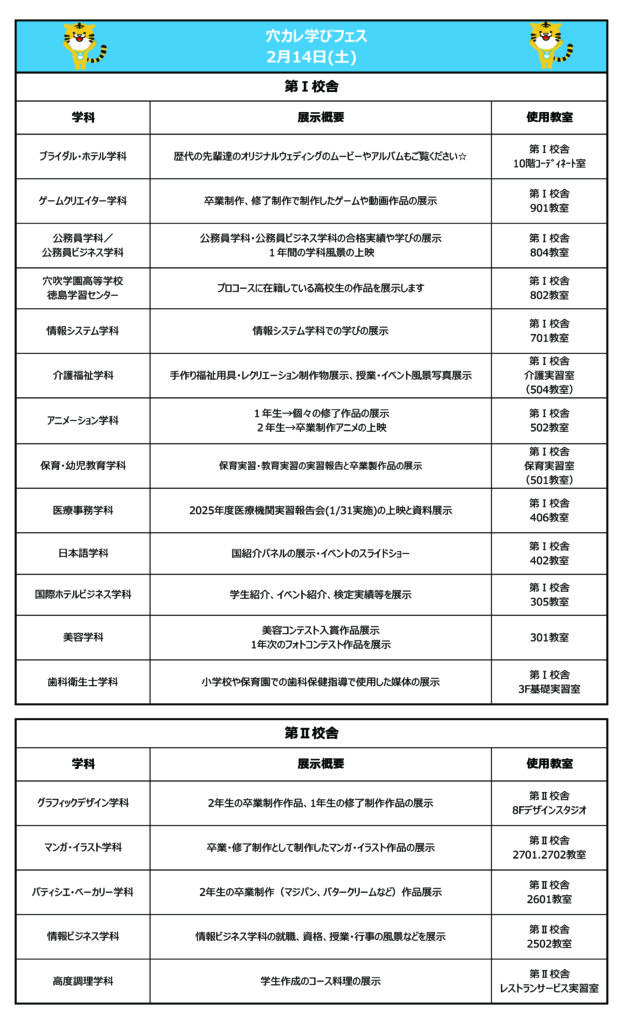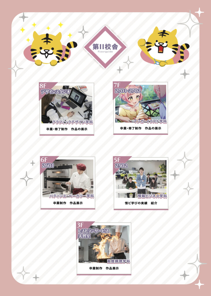 12:00~15:00まで第1校舎と第2校舎全ての展示会場の見学が可能です。