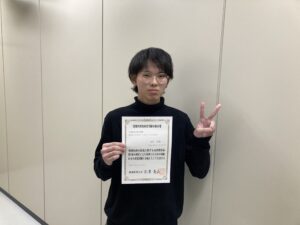 ゲームクリエイター学科3年の向井亮凱さんが、昨年秋に開催されました「応用情報技術者試験」に合格しました。