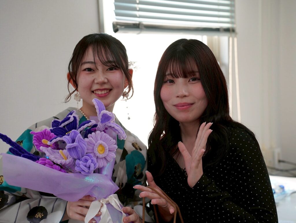後輩たちは先輩にサプライズ‼モールで可愛い手作りのブーケです🌸