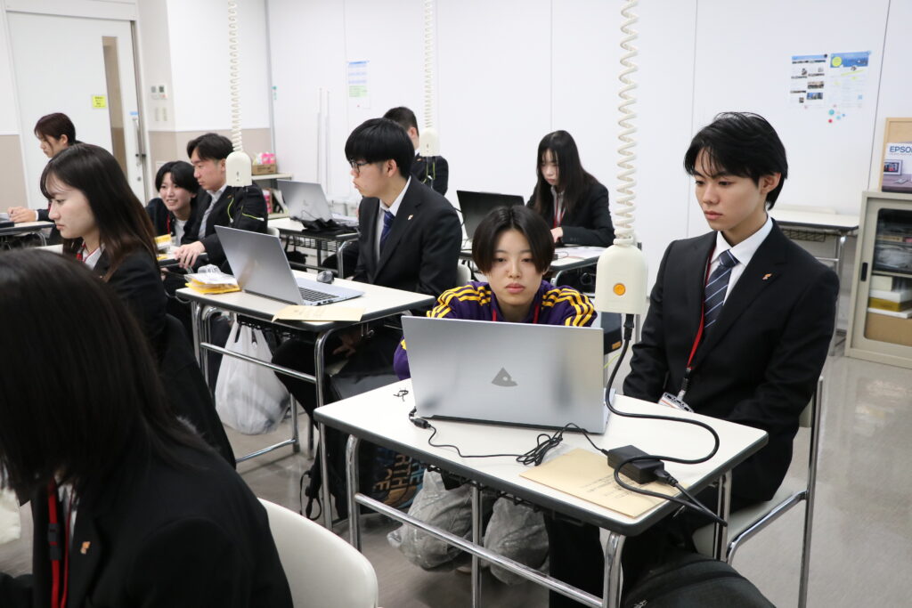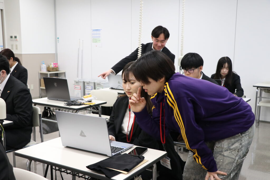 新しいノートパソコンのセットアップは、情報ビジネス学科2年生がアシスタントとして大活躍!