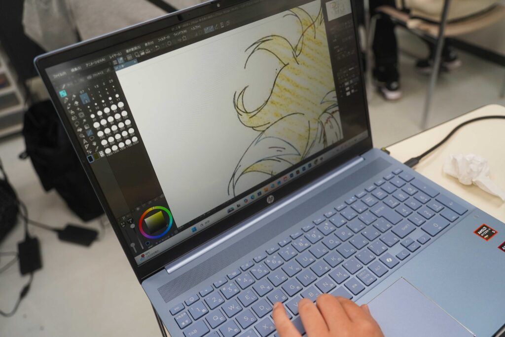 1年生のパソコンのセットアップも完了し、早速デジタル作画の勉強を始めました。