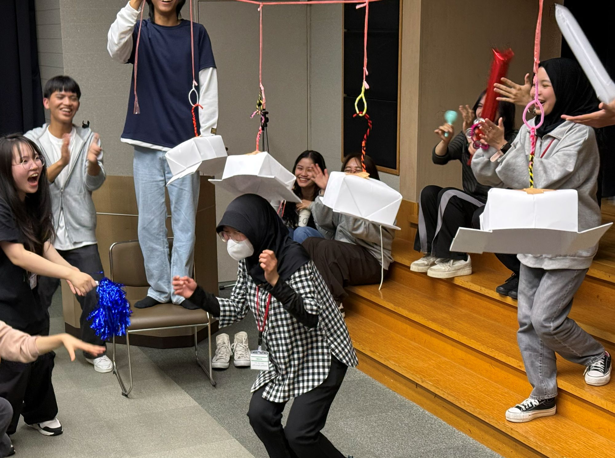 さらに、仲良くなるため2年生が準備したレクリエーションでは、1年生の緊張もすっかり解けた様子で、会場は大盛り上がりでした。