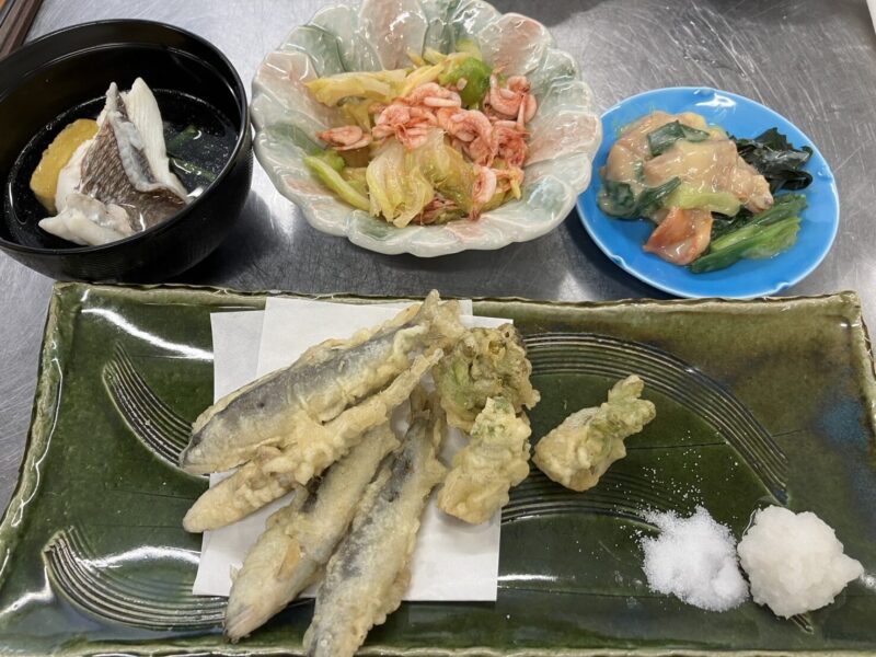 小鮎とたらの芽の天ぷらは少し大人の味がしたみたいですが、みんな美味しそうに完食していました!